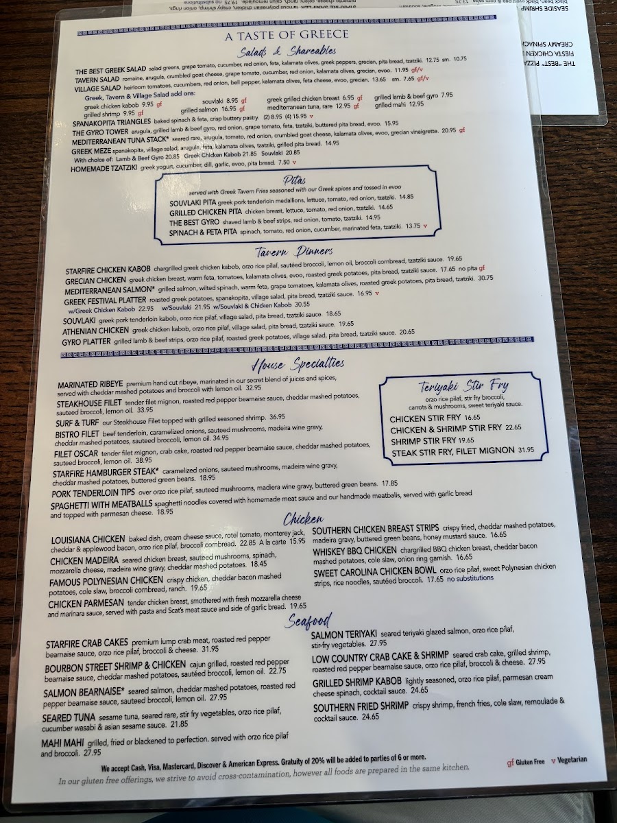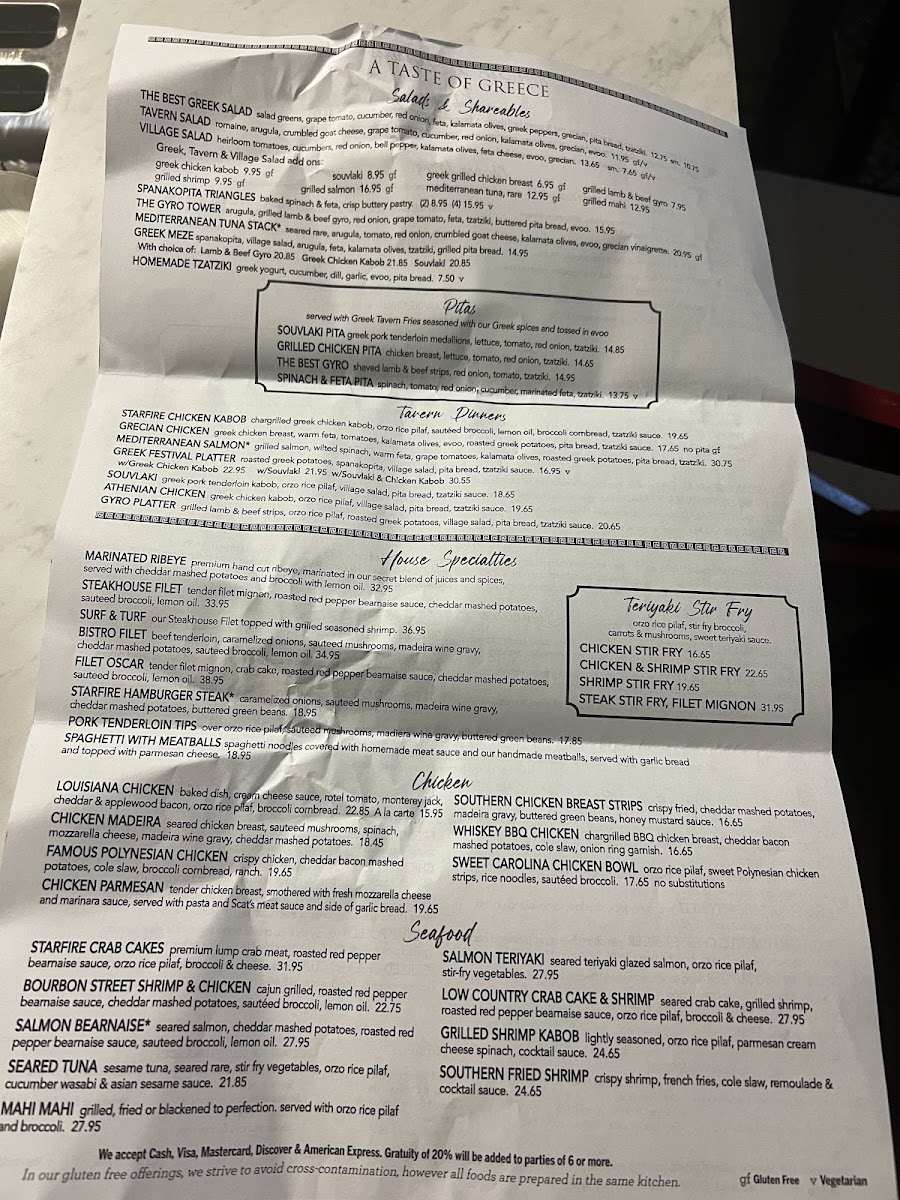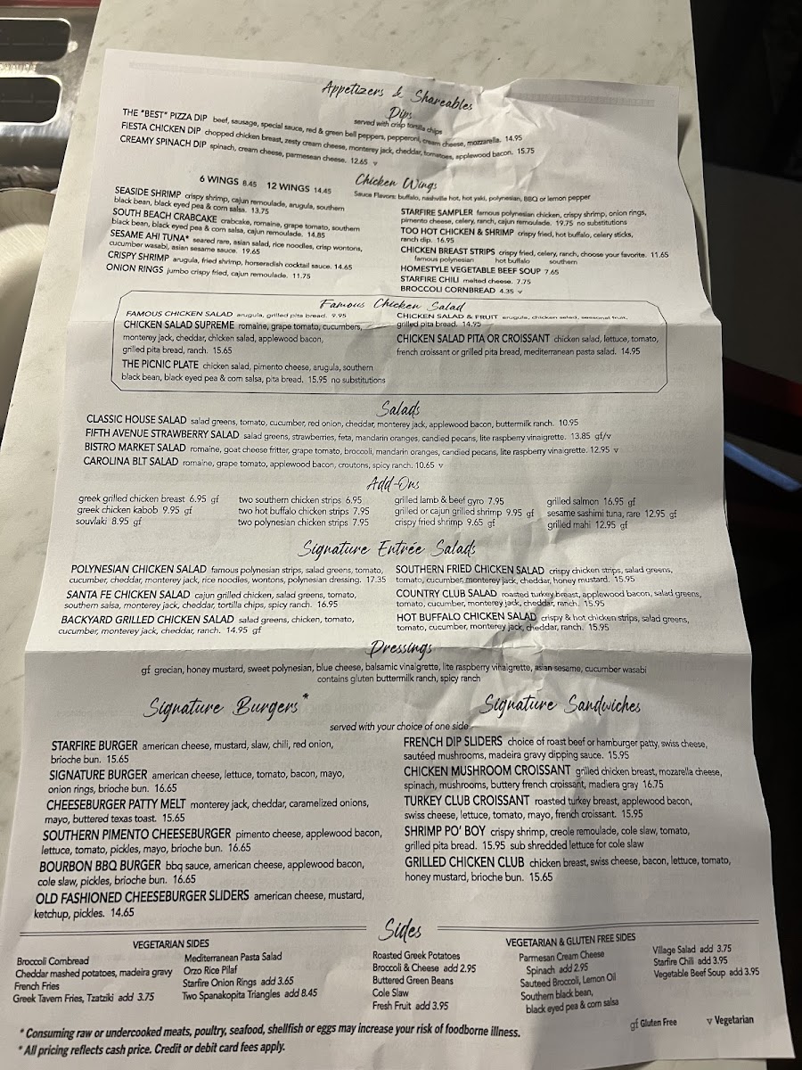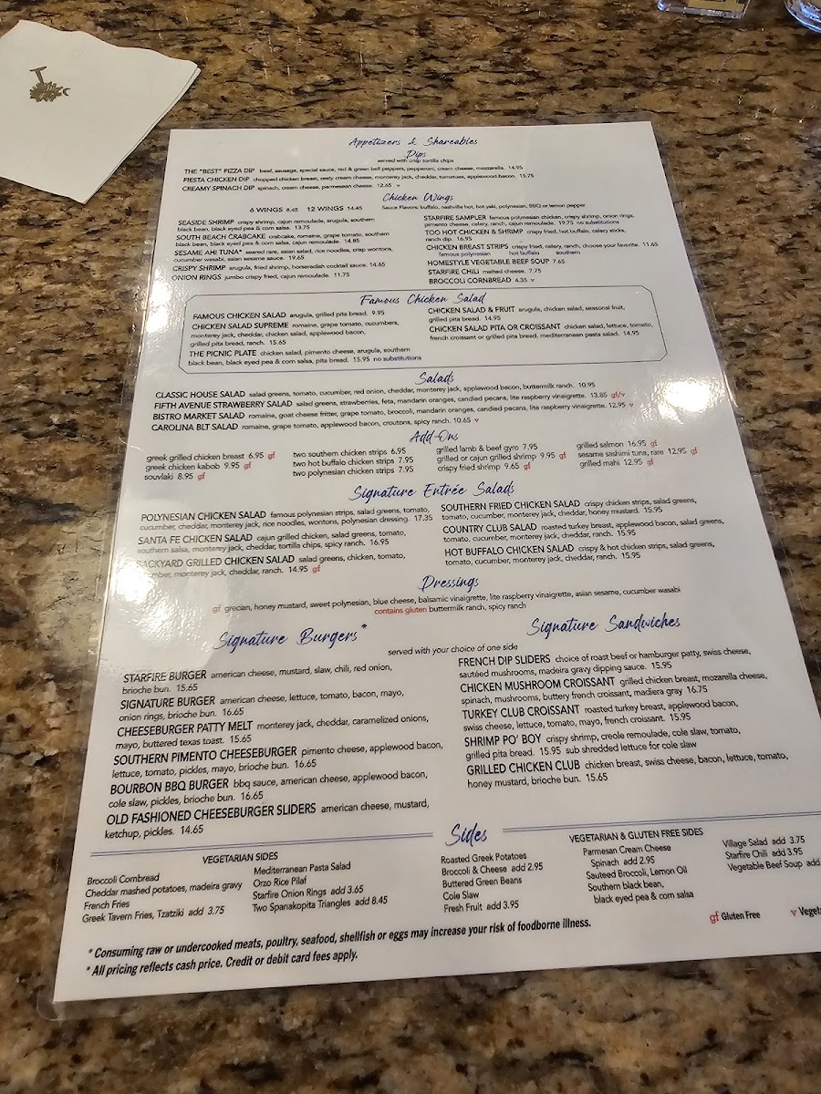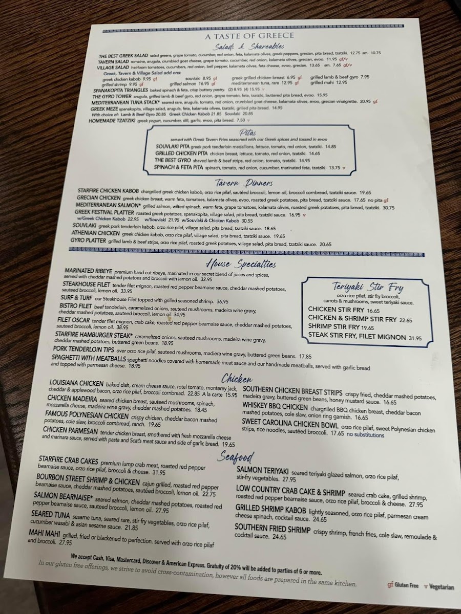 Starfire Grill Menu